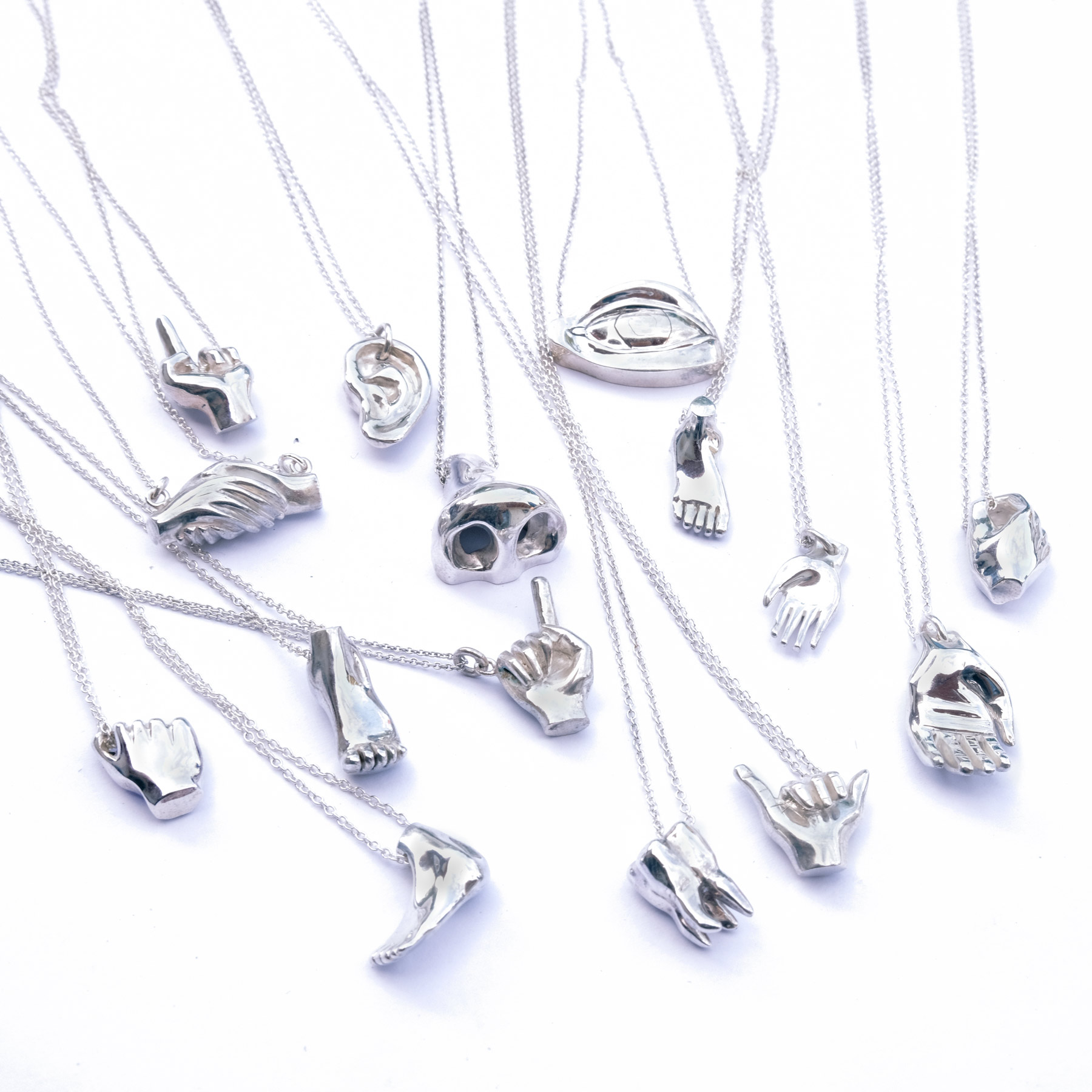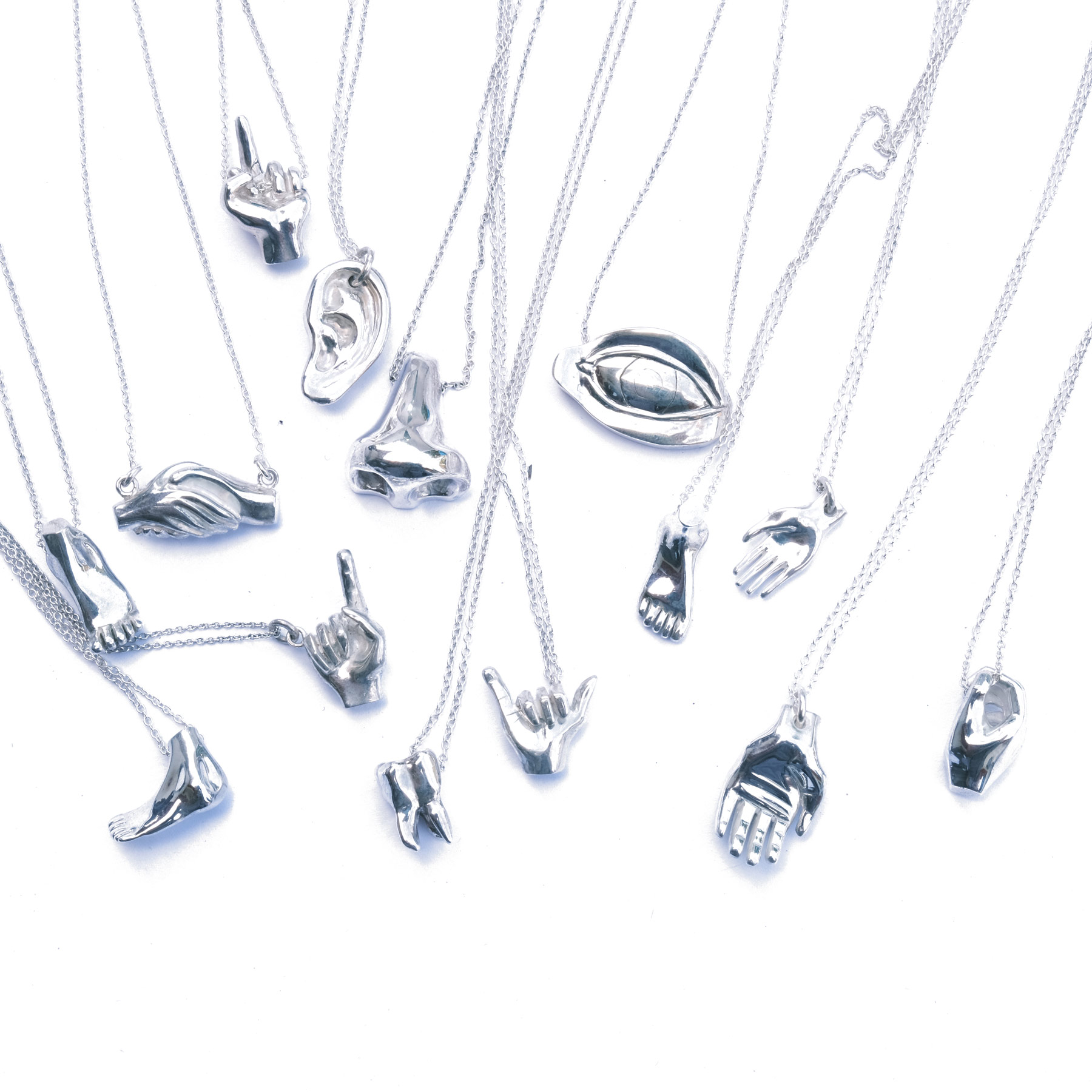 15 mini-sculptures de parties du corps montées en pendentif. Chaque pendentif représente un symbole, un moment d’histoire qui parlera à chacun différemment.